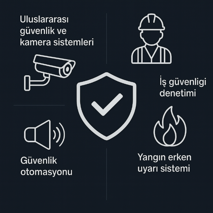 - Uluslararası güvenlik ve kamera sistemleri: İzinsiz giriş, izinsiz veya şüpheli hareketler algılandığında alarm sistemi otomatik olarak devreye girer.